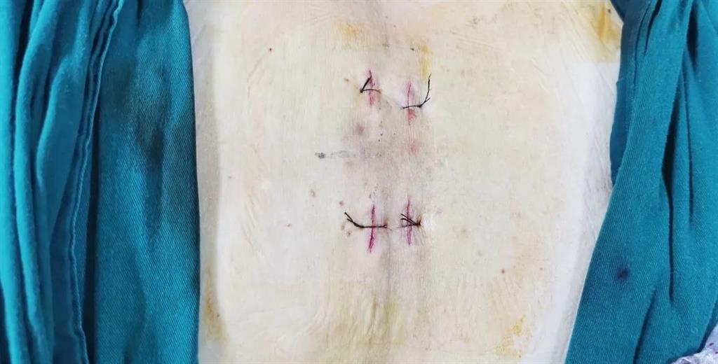 據(jù)了解,脊柱內(nèi)鏡下腰椎融合術(shù)只需要打幾個(gè)“鑰匙孔”即可完成。聽(tīng)起來(lái)是不是很簡(jiǎn)單?在脊柱內(nèi)鏡下,劉丹主任先后為患者進(jìn)行了椎管減壓、椎間盤摘除,再實(shí)施椎弓根螺釘放置、椎體植骨融合內(nèi)固定,一系列步驟有條不紊。