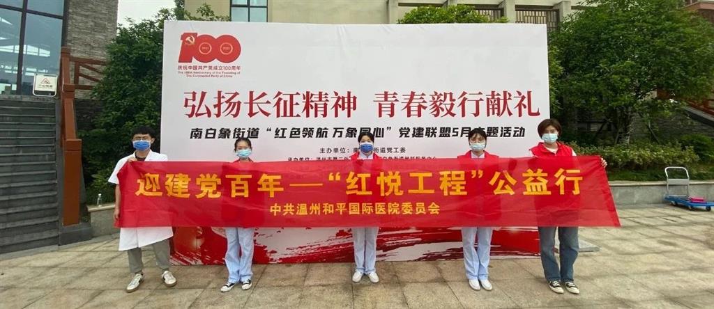 雄關漫道真如鐵,而今邁步從頭越。新時代,新征程,和平國際醫(yī)院的步伐也更加堅定。以長征精神為支柱,以“紅悅工程”為紐帶,加強與黨建聯(lián)盟單位、學校、社區(qū)、養(yǎng)老院等社會組織及團體的聯(lián)系,讓醫(yī)務人員走出醫(yī)院,更直接地為學校師生提供專業(yè)醫(yī)療服務,共同為建黨百年獻禮!
