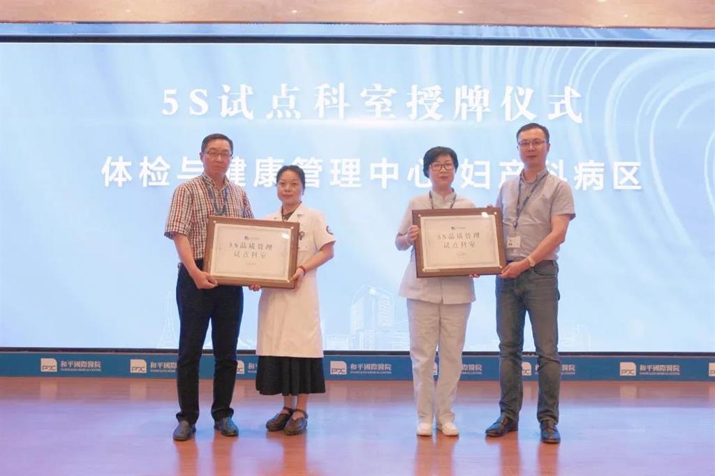 為切實(shí)打造國(guó)際標(biāo)準(zhǔn)的品質(zhì)服務(wù),創(chuàng)造舒適、高效、安全的醫(yī)療環(huán)境,和平國(guó)際醫(yī)院將以體檢中心及婦產(chǎn)中心為試點(diǎn)科室,通過5S管理改善工作環(huán)境、改進(jìn)工作習(xí)慣確保醫(yī)療工作走向更高的標(biāo)準(zhǔn)。 和平國(guó)際醫(yī)院董事長(zhǎng)、院長(zhǎng)薛志輝(右一)、賀亞東(左一)為5S試點(diǎn)科室(體檢中心、婦產(chǎn)科)授牌。