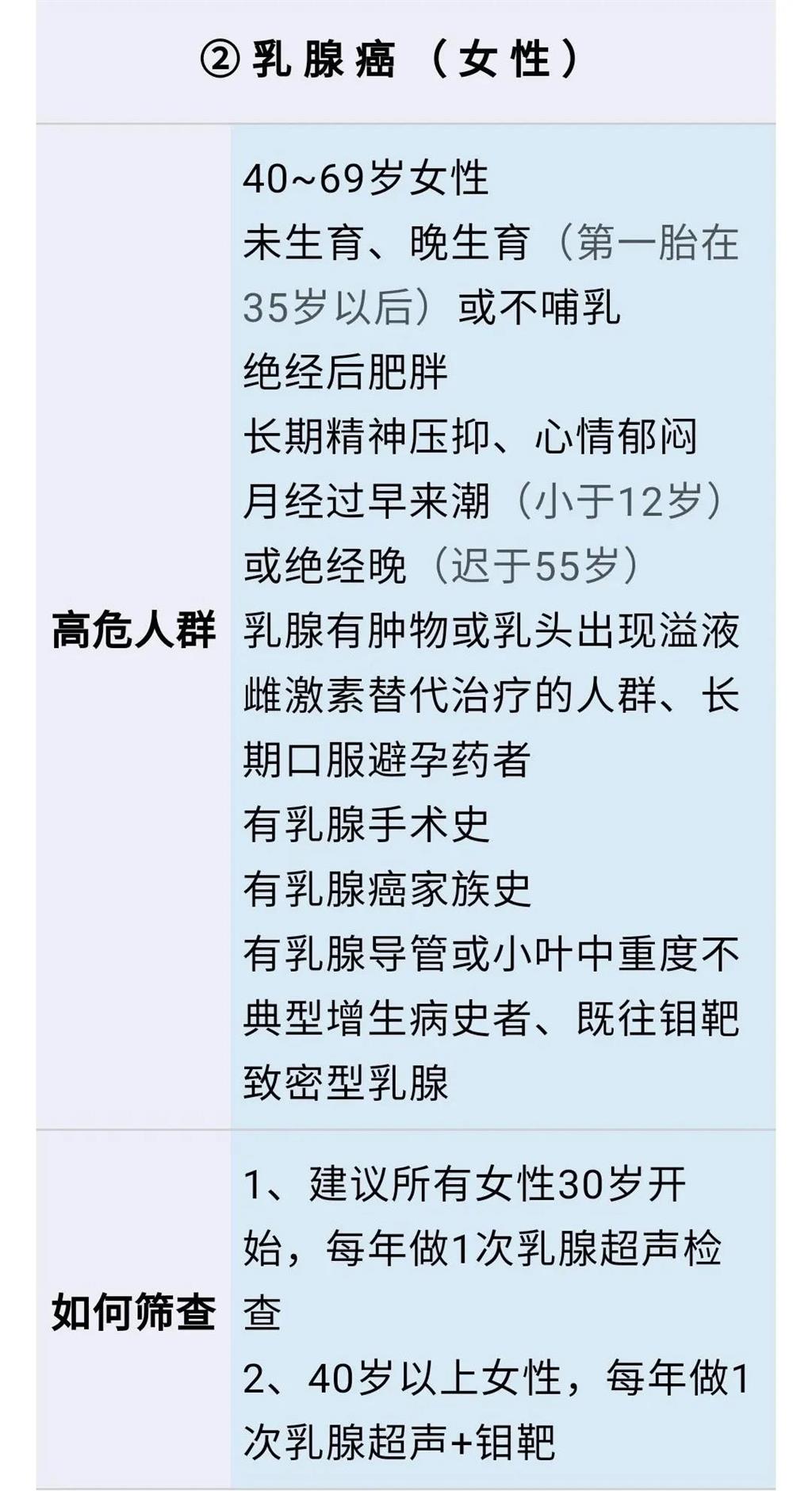 癌癥發(fā)病的第一高危因素是“年齡”,所以建議:①根據(jù)年齡 ②參照每種癌癥的高危因素,來確定自己需要篩查的項(xiàng)目。