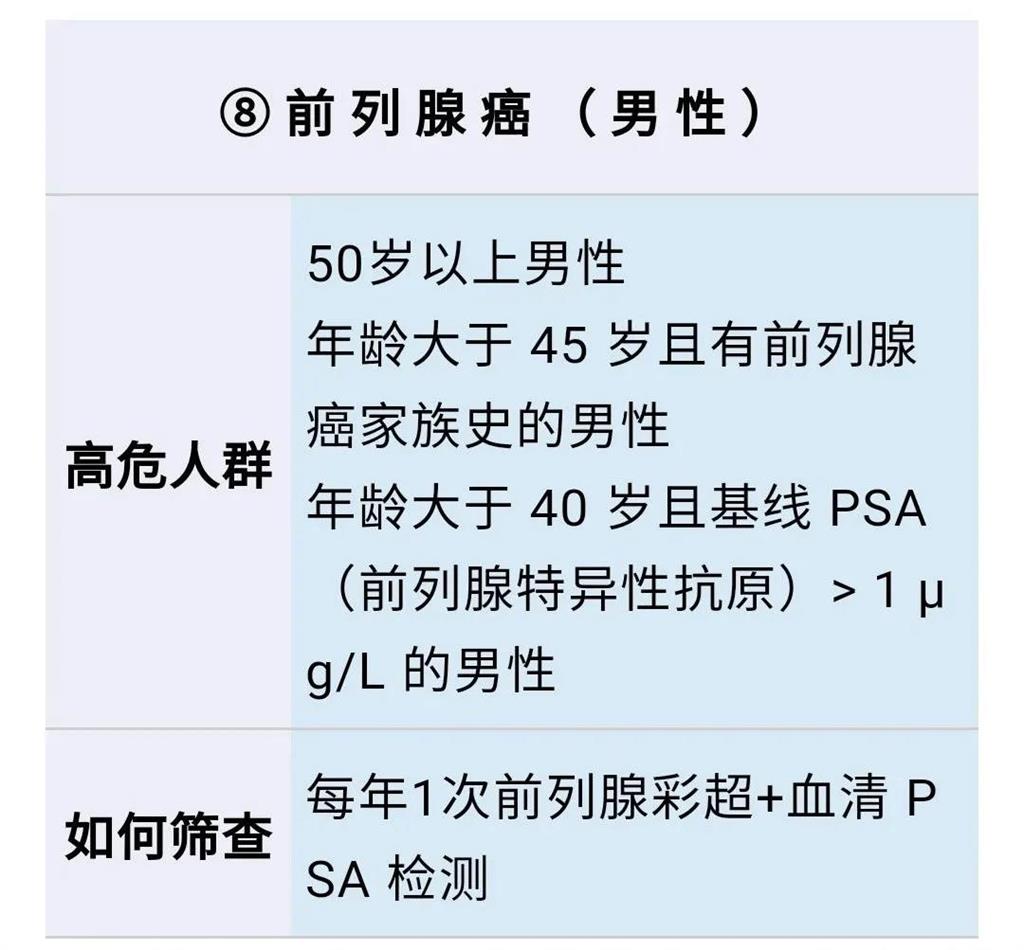 不過,癌癥大概有200多種,不可能做到每種都防。所以小編建議大家重點(diǎn)關(guān)注我國(guó)發(fā)病率最高的8種癌癥,即:肺癌、乳腺癌、結(jié)直腸癌、胃癌、肝癌、食管癌、宮頸癌、前列腺癌。(特別是前6種,占我國(guó)所有癌癥發(fā)病和死亡率的80%) 8大癌癥的高危人群和篩查方式,可以對(duì)照表格: