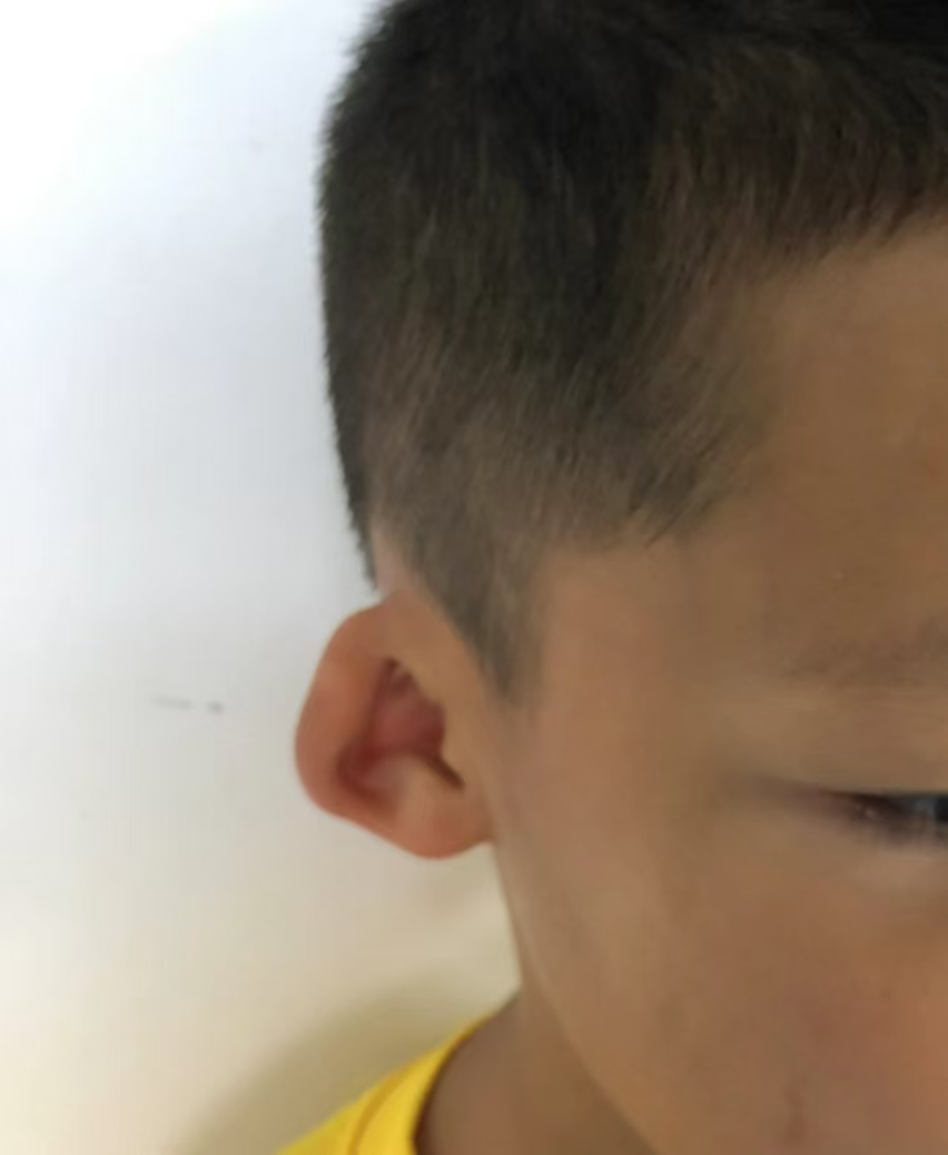 今年6歲的諾諾(化名),出生時耳廓雙側不對稱,右耳發(fā)育偏小,還有點前傾,親朋好友都說,“寶寶小,還沒「長開」呢。” 但隨著時間推移,右耳不僅沒「長開」,還長成像“杯子”一樣畸形。